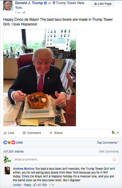 When did the Donald even learn about Cinco de Mayo, and is it celebrated outside of the US southwest (I really don’t know)?